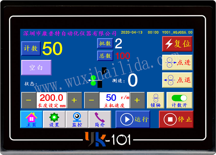无锡海利达自动化仪器厂 YK-101触摸屏控制系统 使用说明书(制袋机极限版) 一、概述 YK-101控